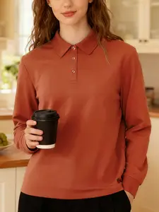 Polos informales de otoño para mujer, camisetas básicas para ir al trabajo, camisa cómoda con botones, camisetas deportivas sólidas para oficina, camiseta nueva de manga larga para uso diario